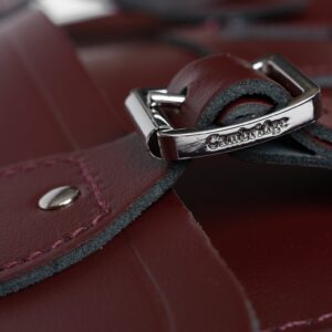 – Carefully embossed name and logo on the reverse of the bag and on its nickel hardware
