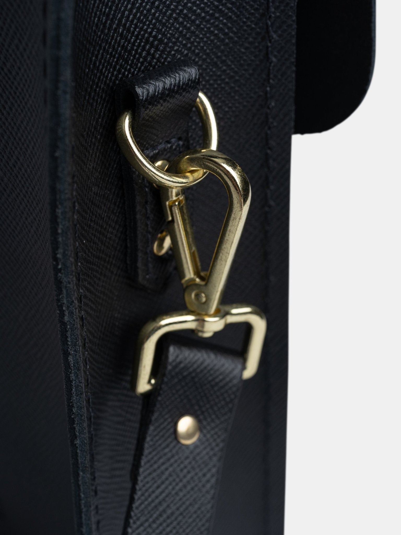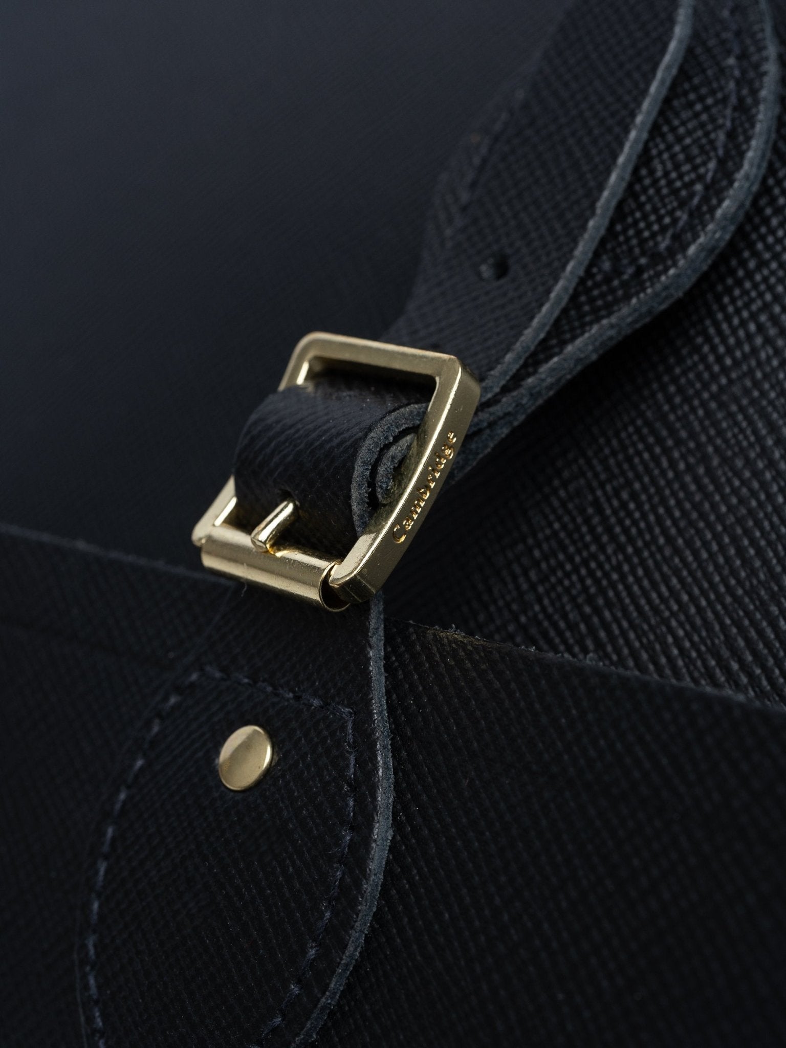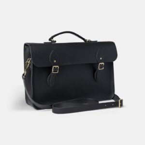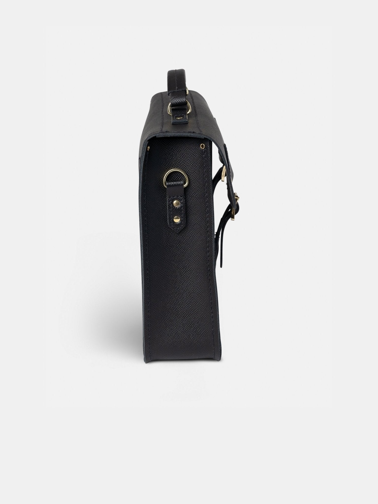 The ultimate in sophistication – black Saffiano leather, durable yet so elegant with its distinctive cross hatch texture. The classic bag for work, The Briefcase has a long history with the legal profession. It is still common to see Barristers in wig and gown rushing between their Chambers and court carrying a similar case stuffed with legal papers. Our version of The Briefcase offers plenty of space for several folders and a handy interior pocket to keep your papers in order in the court. Suitable for legal briefs or creative briefs, this handsome bag is a perfectly judged investment in your career.