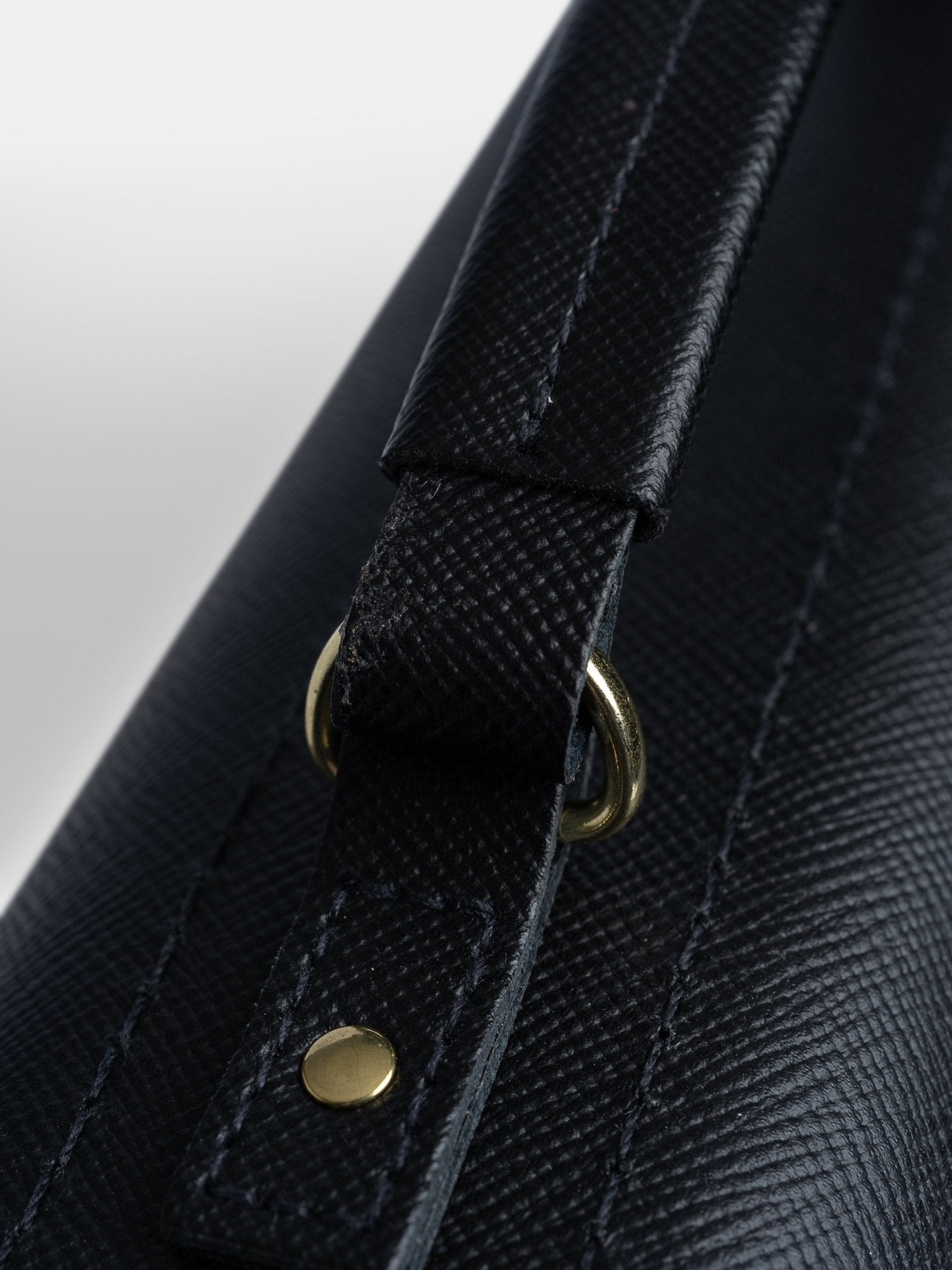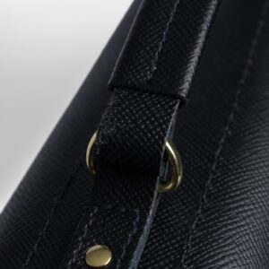– Made from black Saffiano leather with a distinctive cross hatch texture