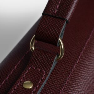 – Logo embossed on reverse and brass hardware