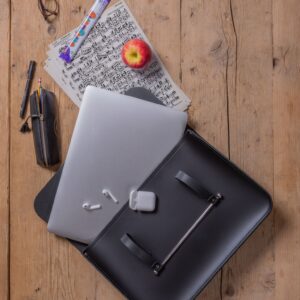 The Music Case is a symphony of stylish design – an exemplary work bag that truly looks like nothing else. The Music Case is elevated beyond a commonplace document or laptop bag by its distinctive bar closure, which slips over its single top handle to effortlessly secure the front flap, keeping your prized possessions or your latest unfinished masterpiece safely within. This is a versatile work bag which can carry a cacophony of documents but make them look sleekly in tempo with your professional ensemble.
