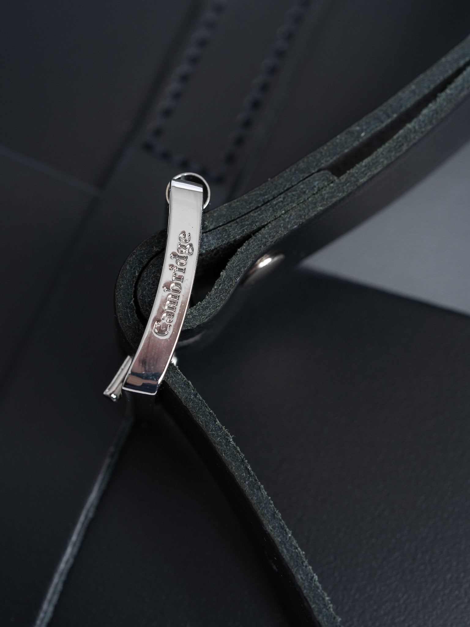 – Name and logo embossed on reverse of case and nickel hardware